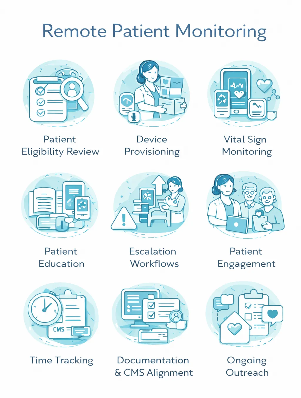 Our RPM program supports ongoing physiologic monitoring, patient engagement, and escalation workflows. We manage operational tasks so your providers can focus on clinical decisions.